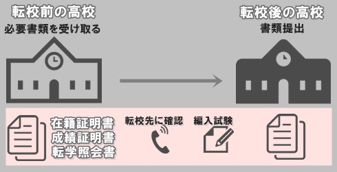 新しい高校で再度編入試験をうけ、合格すれば、入学するのに必要な書類を提出し、手続きは完了になります。
